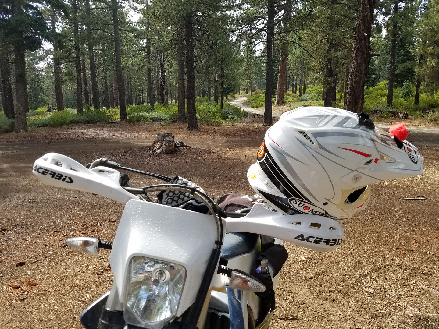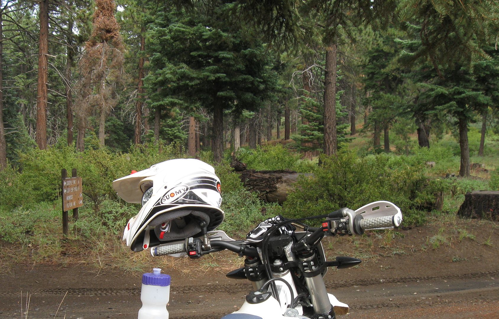 When I arrived at my usual parking spot, there were other vehicles there, including the same 5th wheeler that must come up all the time, because these people have been there every time I have come up so far this summer. I drove in a ways, and parked. The sun was beating down, and the air was heavy with humidity as I suited up to ride. It was disappointing, but still cooler than any other place I could go trail riding in Southern California. Beside, there were some clouds in the sky, including the little round fluffy ones that usually grow and grow, until they become a full blown thunderstorm. I always have faith in these little cotton balls, as they seldom ever fail to deliver.