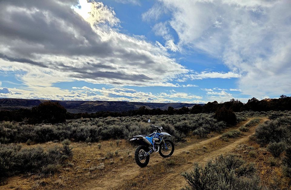 Anyway, the weather looked as though it might be dicey on Christmas day, so I was still lounging around in my tiny apartment at 11 a.m.. But the sun was still out and the temperature was above 40 degrees, so on a whim I threw on some riding duds, (including some brand new boots that I got myself for Christmas) and headed over to the storage shed to pick up Mr. 501, who was sporting a new set of sprockets and drive chain. Then I drove about 20 miles out of town and unloaded the bike. I didn't have more than about two hours to ride, as I was supposed to join friends for a nice prime rib supper, later in the afternoon.
