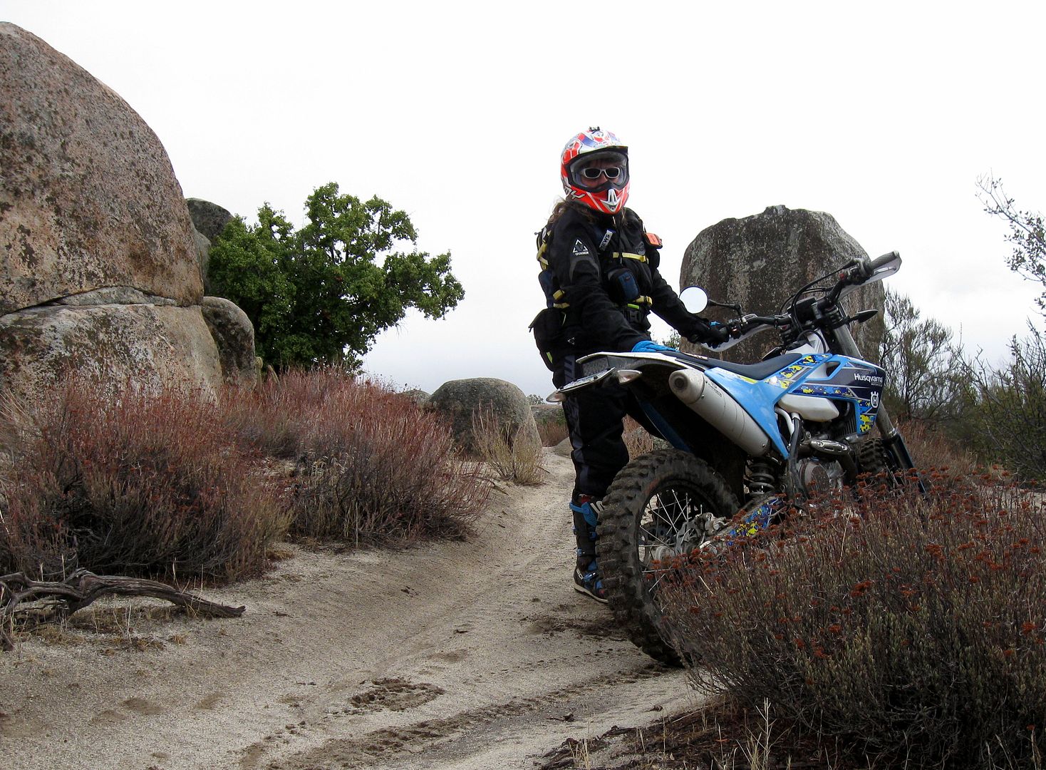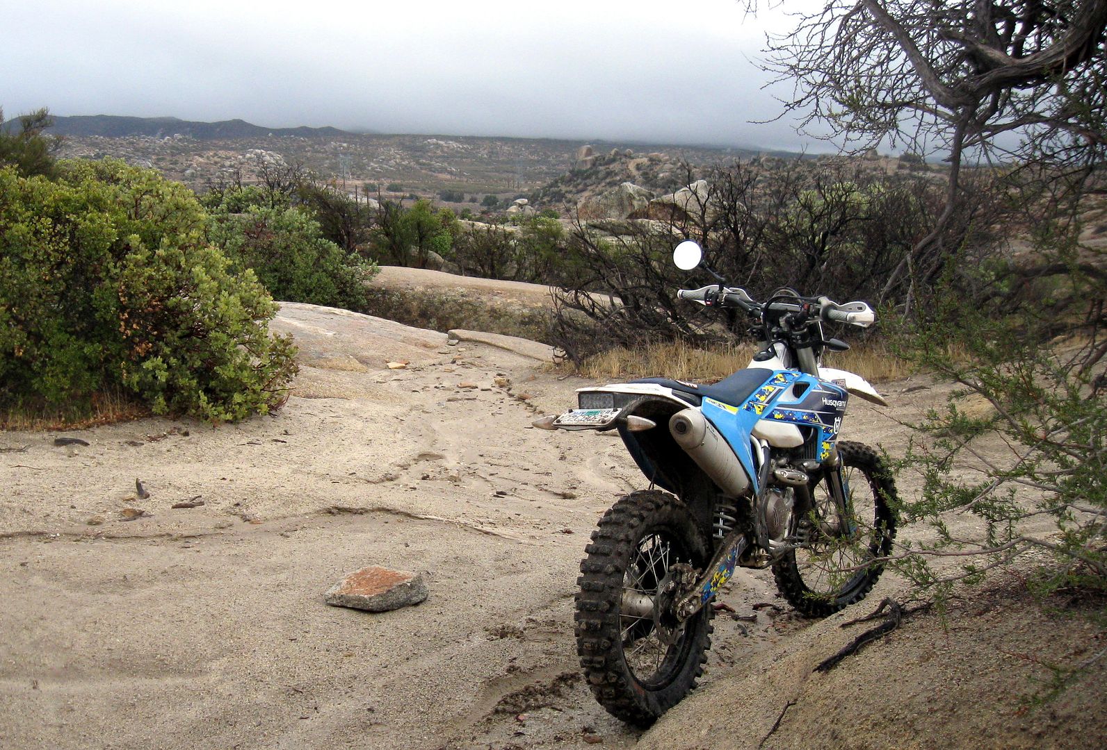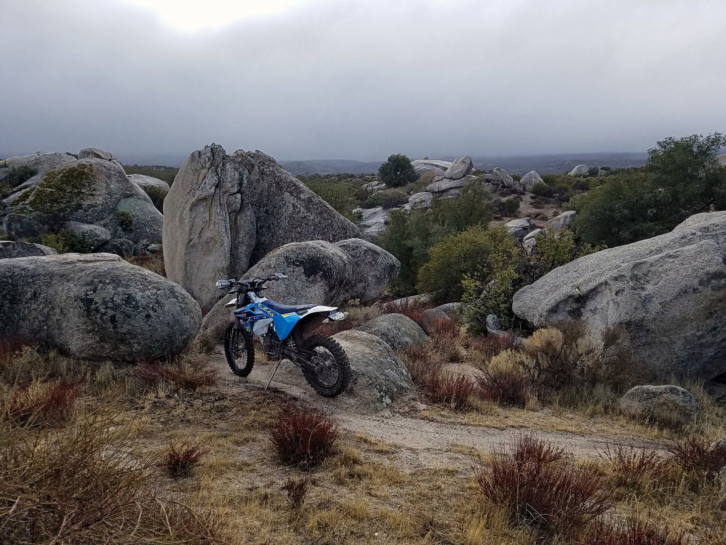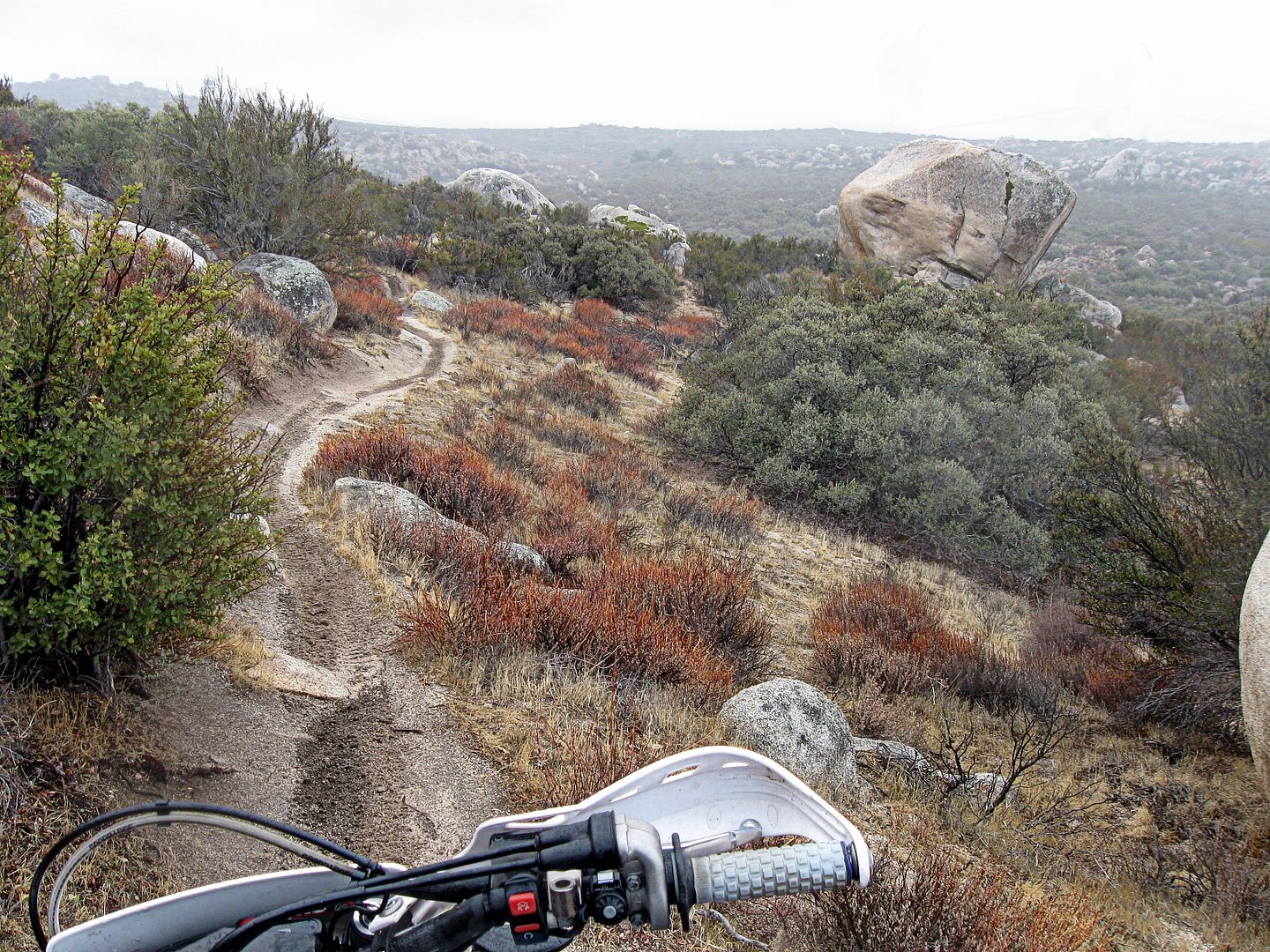 We have had a lot of storms blow through SoCal in the last week or so. Christmas day came up wet, cold and windy in the high desert, but not cold enough for any snow. Nobody else was out there, although there were tracks on some of the trails that led me to believe that some of the locals had ridden over for a morning session.