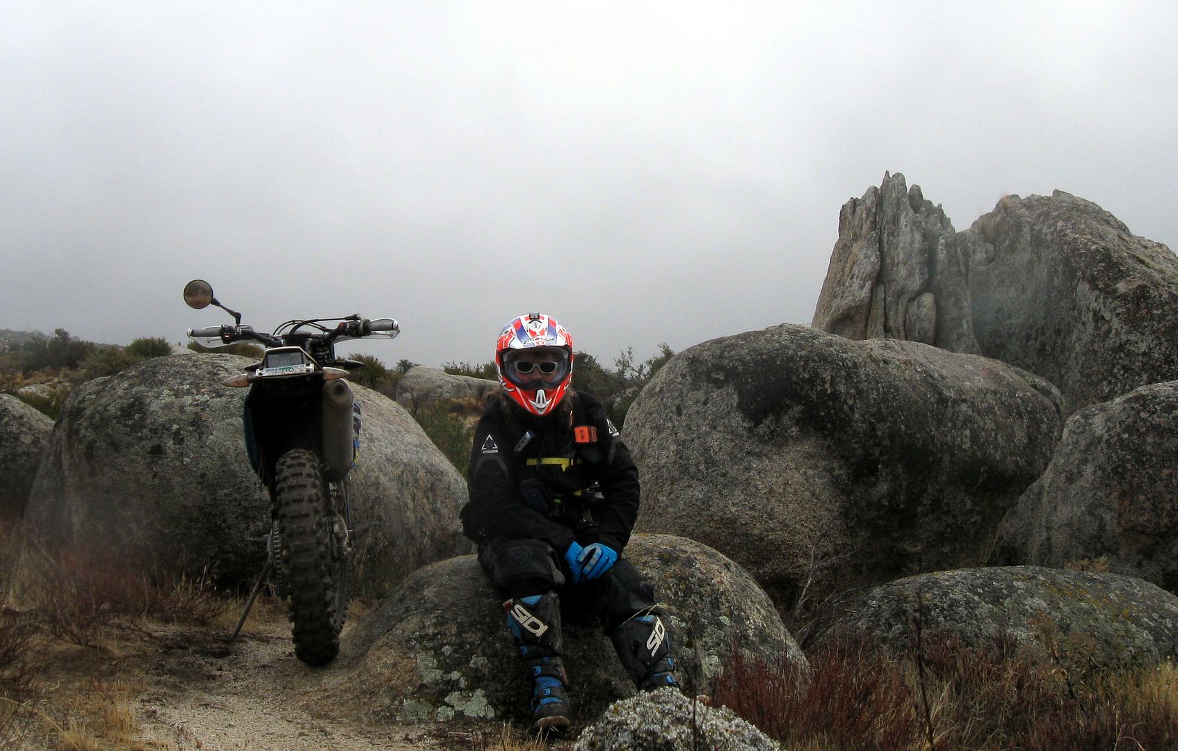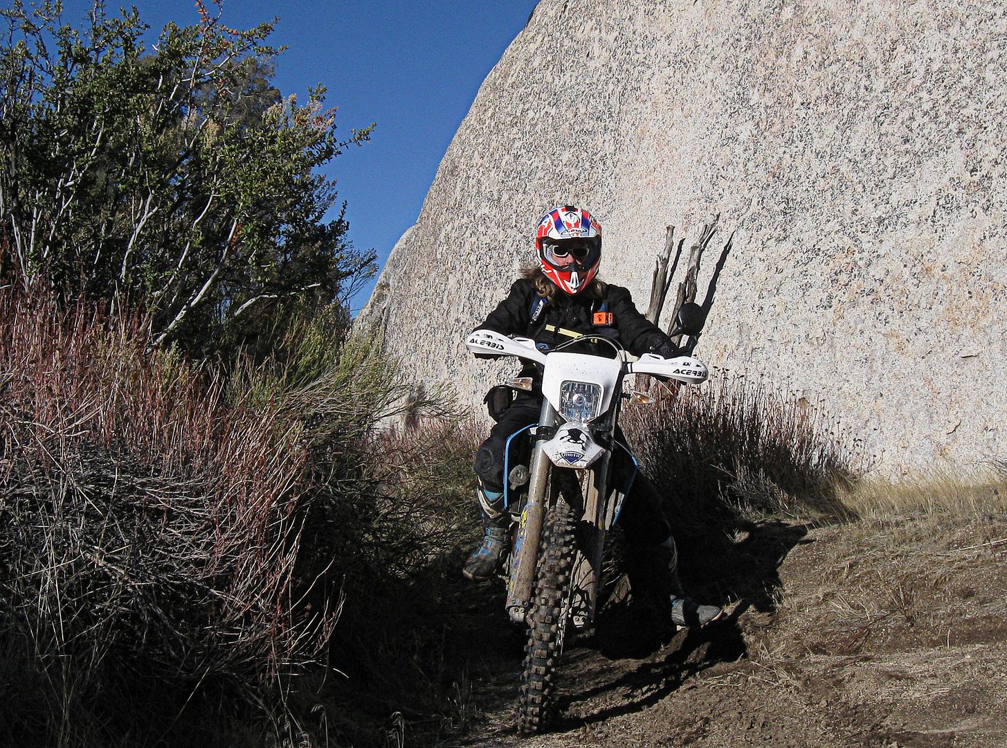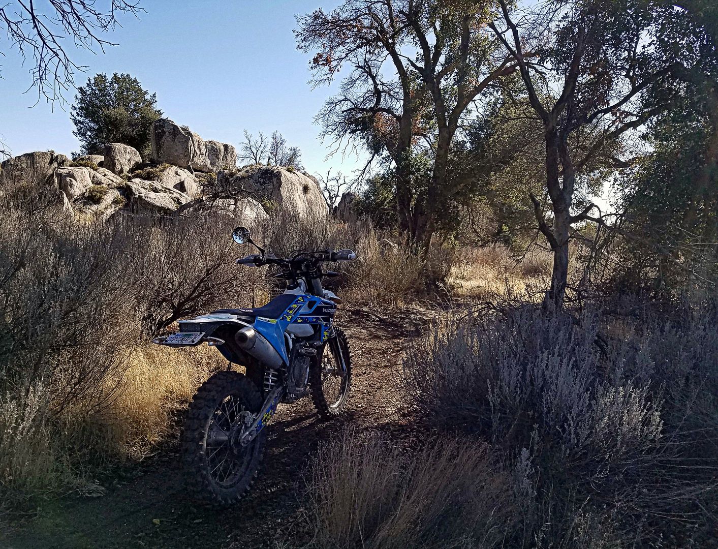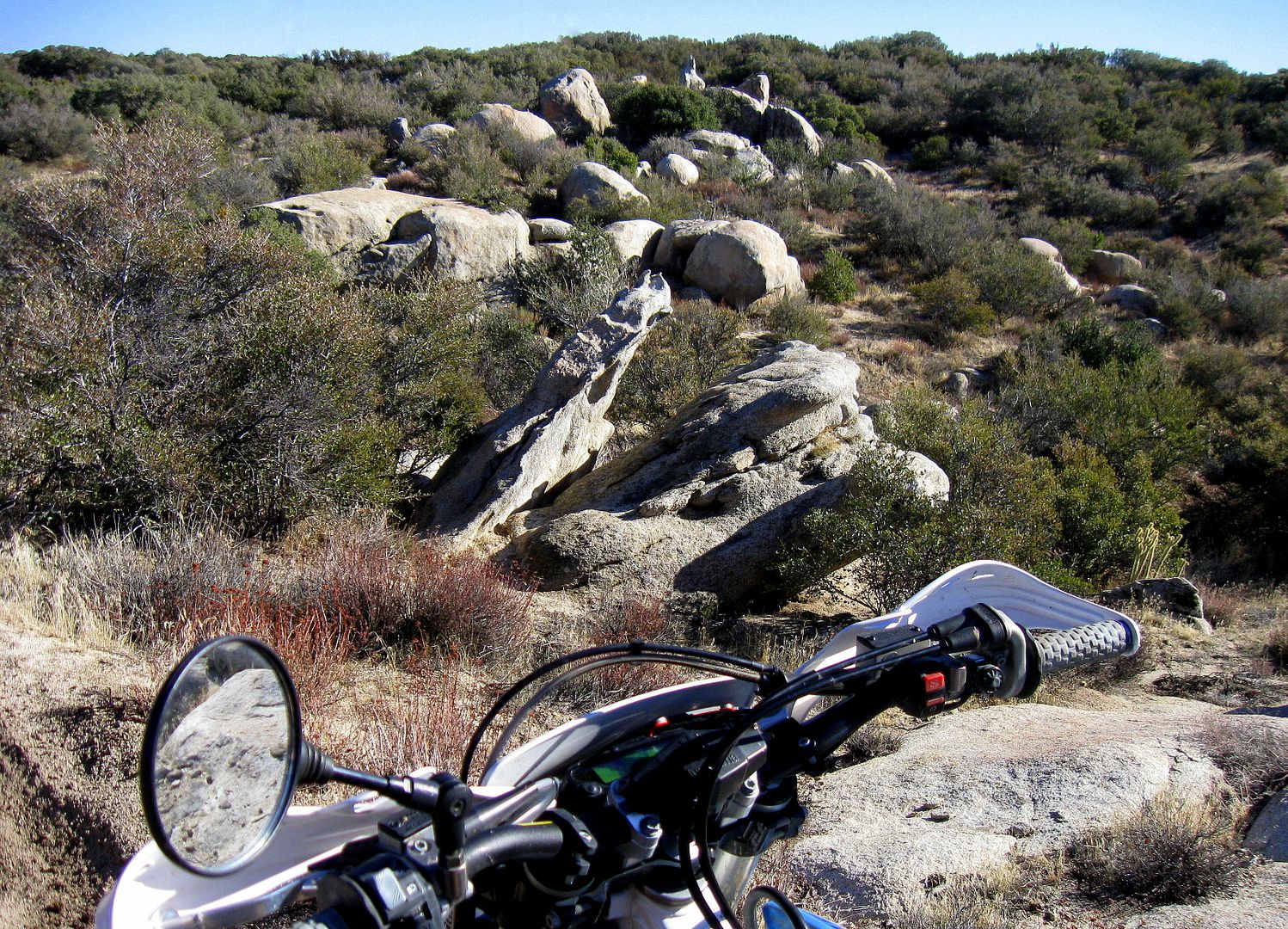 We have had a lot of storms blow through SoCal in the last week or so. Christmas day came up wet, cold and windy in the high desert, but not cold enough for any snow. Nobody else was out there, although there were tracks on some of the trails that led me to believe that some of the locals had ridden over for a morning session.
