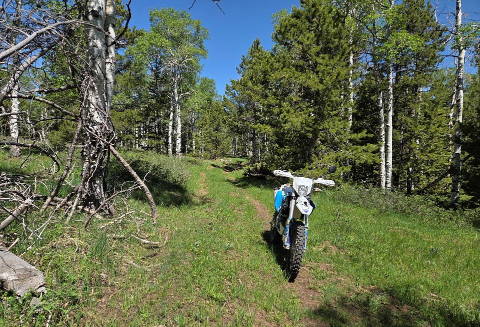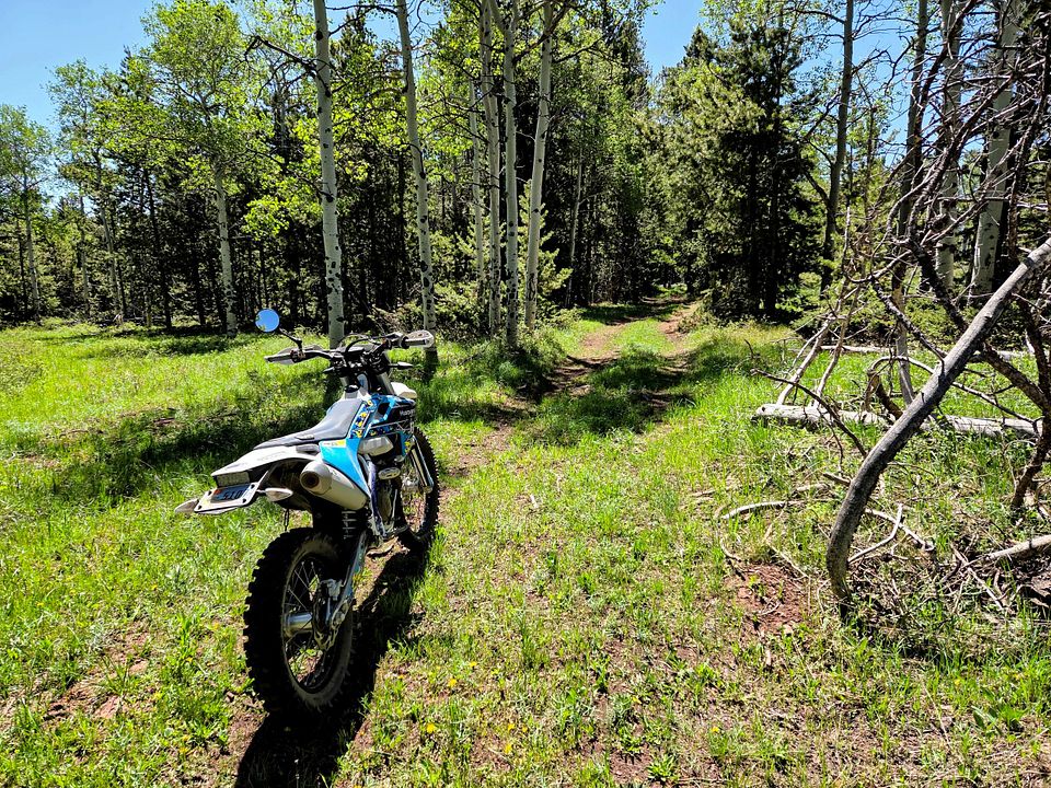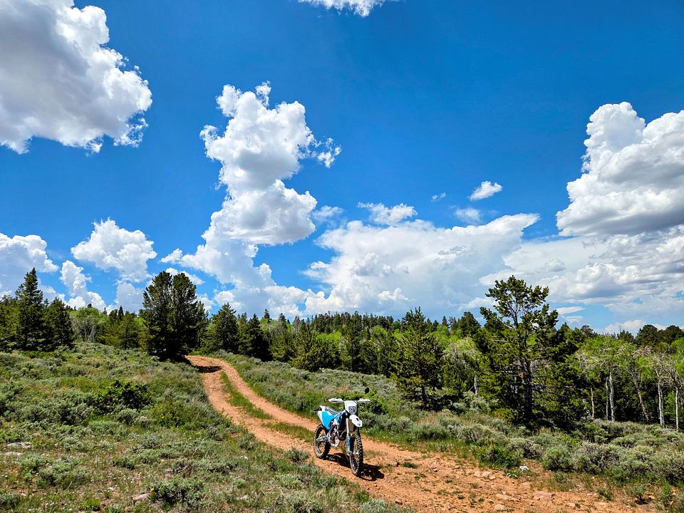 The first weekend of June was a difficult one, after the passing of my dear cat, Paris. I decided to ride in a new place last Sunday, and drove south across the state border into Colorado to ride the Diamond Peak/Three Corners area. I was just exploring and enjoying more nice weather on my FE 501.