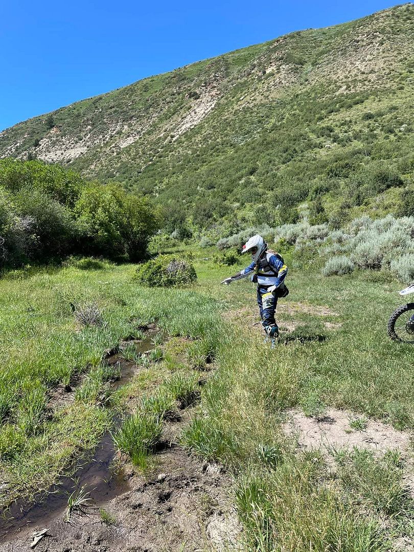 From Little Mountain, we followed a long ridge trail west, that dropped us onto a county road near the Currant Creek ranch. It was all dirt routes back to our staging area. Very warm on the way back, but we could move pretty fast on the wide roads. 72 miles altogether, and a very scenic ride.